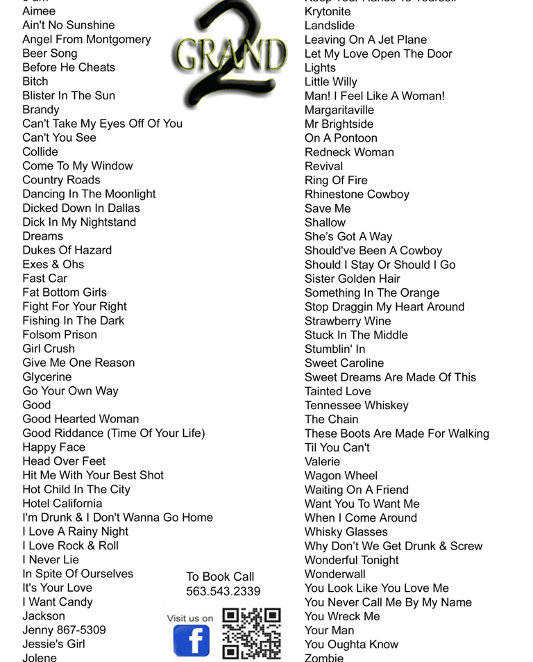 "We had the pleasure of having 2 Grand play a couple times and it's always a great show! Everyone has a blast and they are such fun people!"