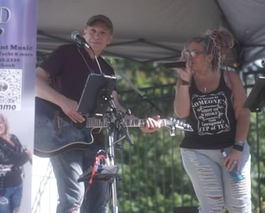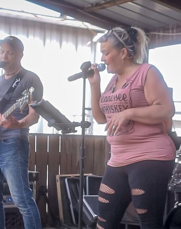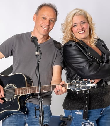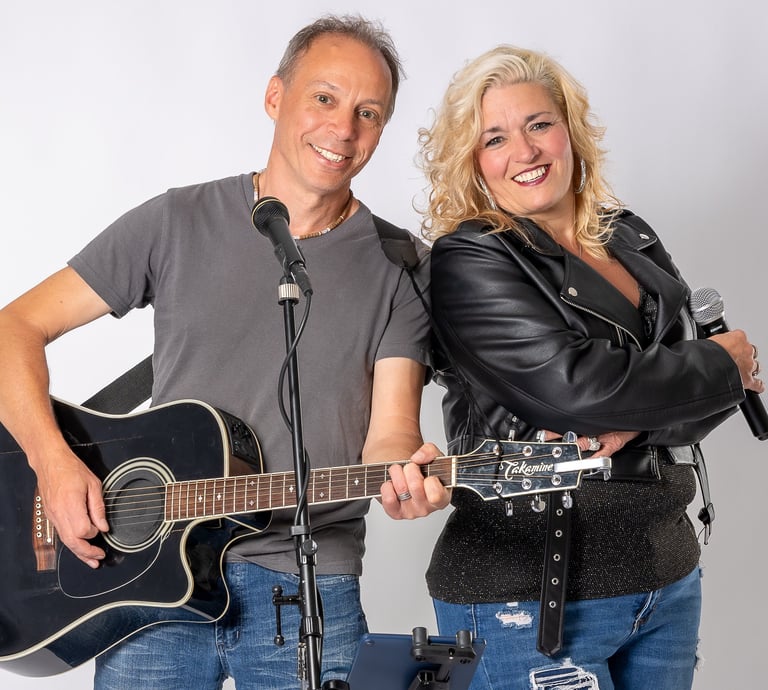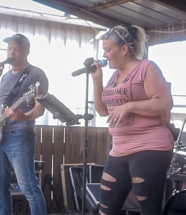Jeremy is an accomplished musician with decades of performance experience, from teenage band member to dynamic frontman and captivating acoustic solo artist. MeCalle's natural talent ignited audience demand when she began contributing vocals—her presence quickly became essential to every show. Their undeniable chemistry transformed home rehearsals into a professional partnership playing for crowds of over 250 people.